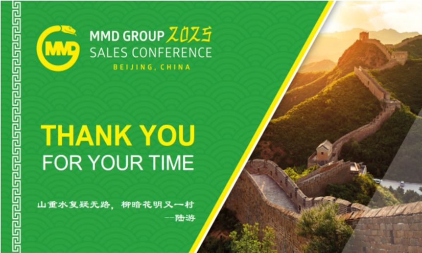 年10月20日至24日,MMD全球銷售和執(zhí)行委員會會議在北京拉開帷幕。這是該會議首次落地北京,匯聚了來自總公司及全球20家子分公司的45名核心參會人員,共同為企業(yè)銷售戰(zhàn)略謀篇布局。會上,各子分公司代表圍繞過去一年的銷售業(yè)績展開深度復盤,詳細拆解重點項目推進亮點,并結合市場趨勢對未來發(fā)展目標與實施路徑進行清晰規(guī)劃。整場會議議程緊湊、成果務實,為MMD全球銷售協(xié)同發(fā)力奠定了堅實基礎。