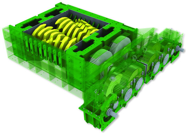 典型的3齒齒環(huán)結(jié)構(gòu)MMD1300系列篩分破碎機(jī)-配備400KW雙電機(jī)驅(qū)動-總重約為95噸。