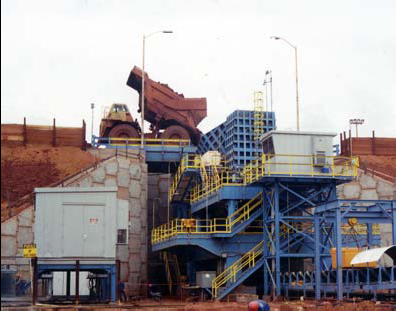 固定式破碎站的優(yōu)點(diǎn)是價(jià)格便宜,缺點(diǎn)是采掘設(shè)備和破碎站間的運(yùn)輸距離和提升高度隨著采掘面的推進(jìn)而逐步增加。